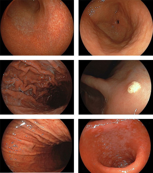 - 右上:鳥肌胃炎(若年者に多い所見)